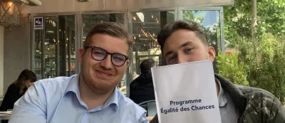 Antoine Guillaume et Emile GATTO, élus étudiants et membres de l’Union des Doubles Diplômes d’Assas (UDDA), ont remis au président Stéphane BRACONNIER le programme « Égalité des chances » qu'ils ont élaboré